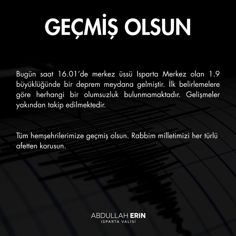 Isparta Valiliği: 1.9 büyüklüğünde sarsıntı oldu