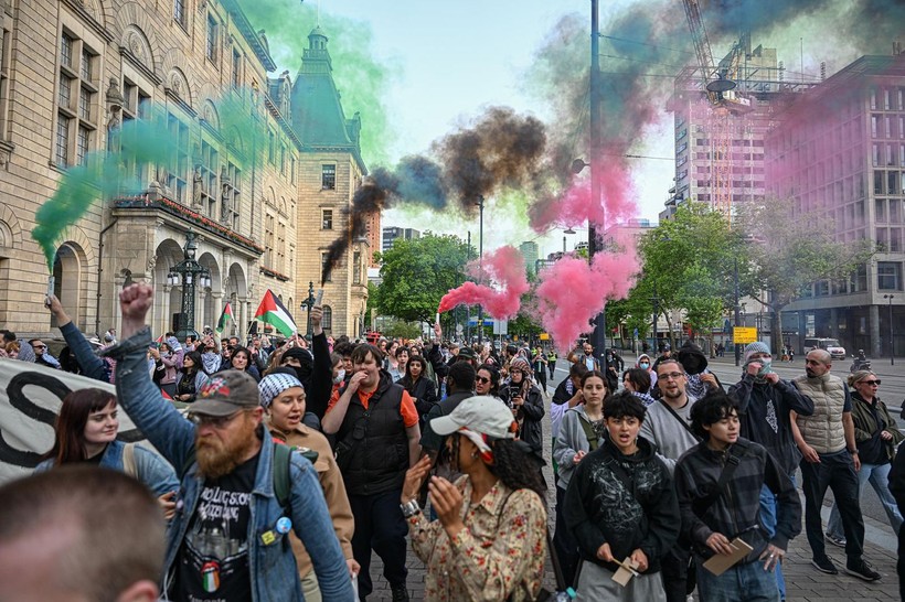 Protestoya katılan kümeler ortasında insan hakları savunucuları, Filistin yanlısı dernekler ve iklim aktivistlerinin de bulunduğu belirtildi.