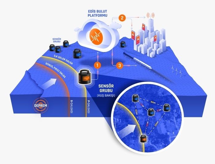 Yıldız Teknik Üniversitesi’ndeki Teknopark’ta geliştirilen zelzele erken ihtar sistemi EDİS, birinci büyük imtihanını evvelki gün Silivri açıklarında meydana gelen 6.2 büyüklüğündeki zelzelede verdi. EDİS’in CEO’su Ali Emre Erişen, 6.2’lik zelzelede merkez üssünü 8 saniye öncesinden; uzaklık uzaklığına nazaran birtakım noktaları 69 saniye evvel uyarmayı başardıklarını söyledi.