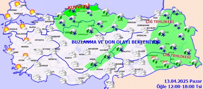 Meteoroloji Genel Müdürlüğü tarafından yapılan varsayımlara nazaran: Ülkemiz genelinin kesimli ve çok bulutlu, İç Anadolu(Konya ve Eskişehir hariç), Batı ve Orta Karadeniz, Doğu Anadolu, Güneydoğu Anadolu’nun kuzey ve doğusu ile Sakarya, Giresun, Trabzon, Antalya’nın doğu ilçeleri, Hatay, Kahramanmaraş, Gaziantep ve Kilis etrafları ve Osmaniye’nin doğu kesitlerinin yağışlı geçeceği varsayım ediliyor. Yağışların, kıyı kısımlar ile Güneydoğu Anadolu’da yağmur ve sağanak, iç ve yüksek kısımlarda karla karışık yağmur ve kar halinde görülmesi bekleniyor. Kastamonu’nun kuzeyi, Bartın, Karabük ve Sinop vilayetlerinin yüksek kısımlarında kuvvetli kar yağışları bekleniyor. Sabah ve gece saatlerinde iç ve doğu kısımlarda buzlanma ve don olayı bekleniyor. Doğu Karadeniz’in iç bölümlerinin yüksekleri ile Doğu Anadolu’nun yüksek ve eğimli alanlarında çığ tehlikesi bulunduğu belirtildi.