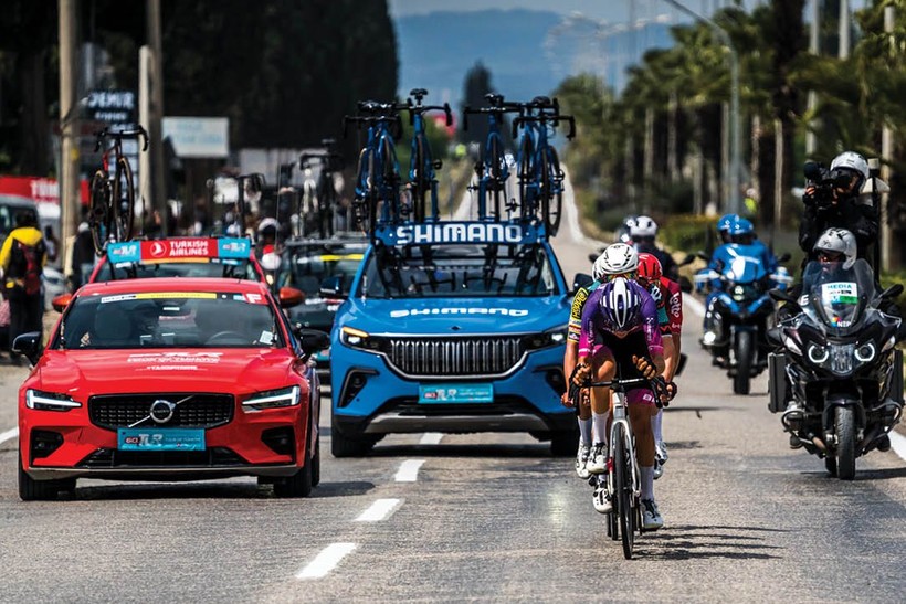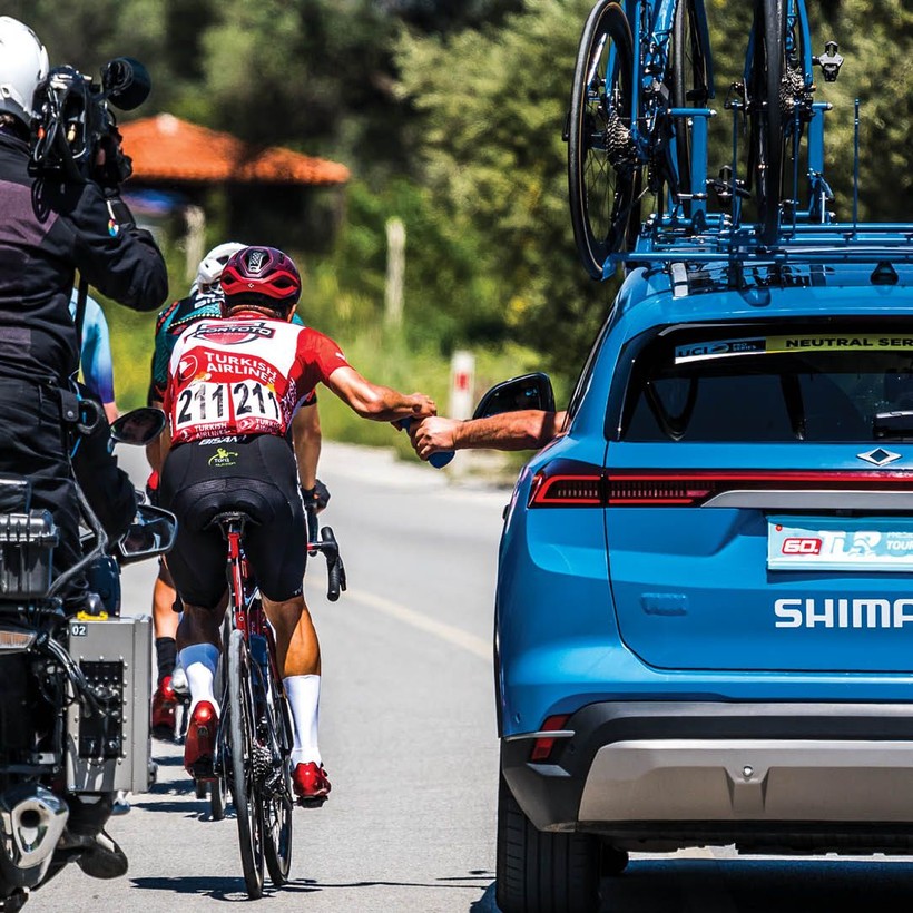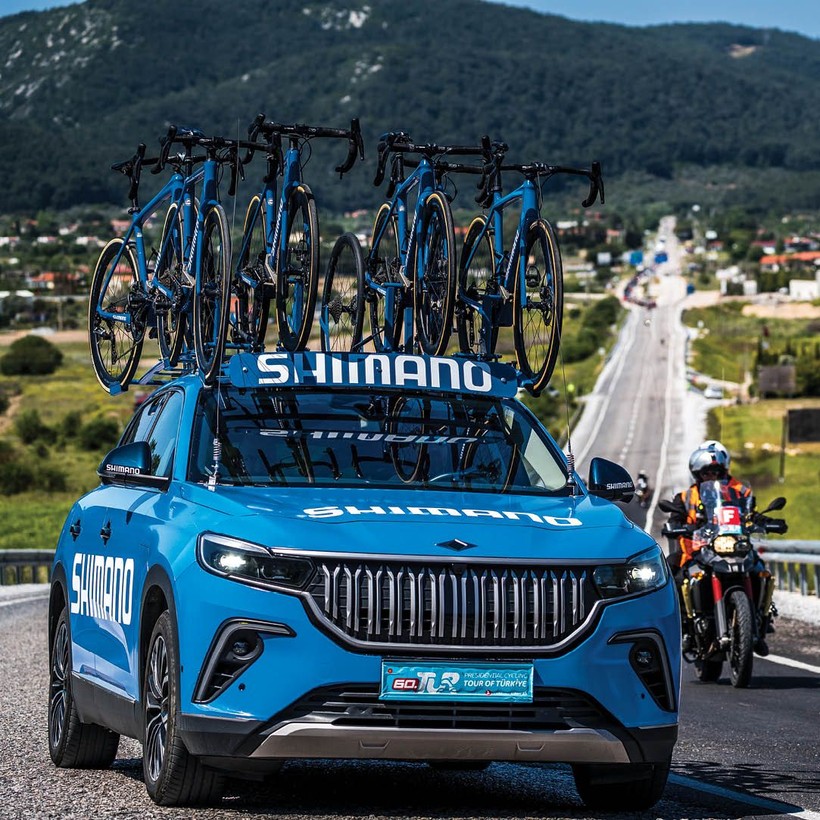 Türkiye’nin 2025’teki memleketler arası bisiklet yarışlarında Shimano’nun Neutral Service Hizmet Aracı olarak Togg T10X kullandı.