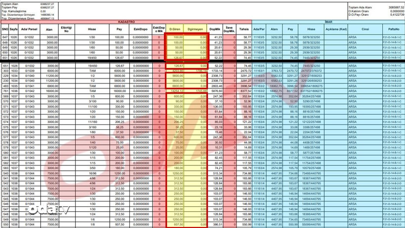 Bölgeye ilişkin 19 sayfalık Mal Sahipleri Araştırma ve Özet Formu’na bakıldığında Düzenleme Paydaşlık Hissesi Oranı (DOPO) ve düzenlemeye giren alanların yoğunluğu dikkati çekti. Pekala bu sözlerle aktarılan datalar neyi tabir ediyor?