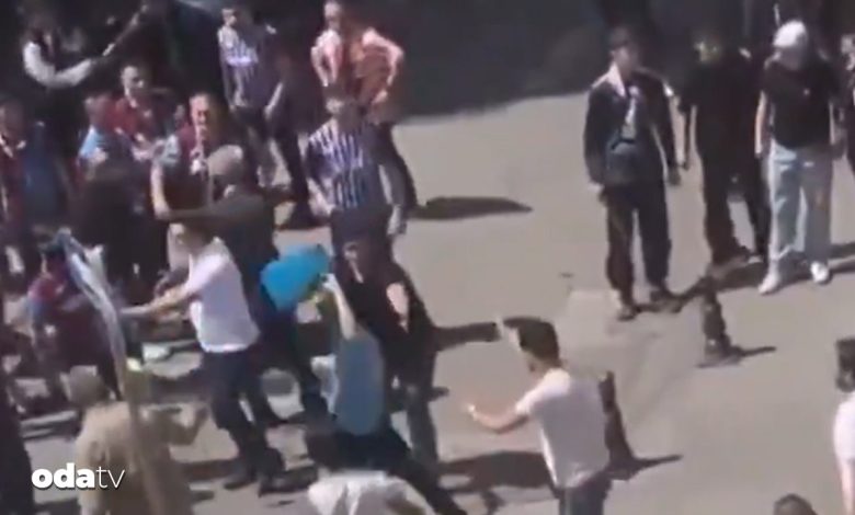Kent meydanında karşı karşıya gelen taraftarlar karşılıklı laf dalaşının akabinde taşlı sopalı birbirine girdi. Birtakım taraftarların hafif yaralandığı arbede polisin ve esnafın ortaya girmesiyle son buldu.