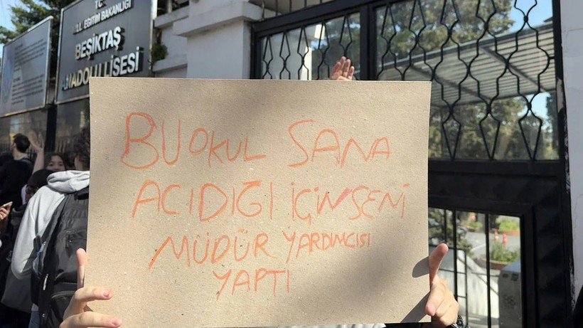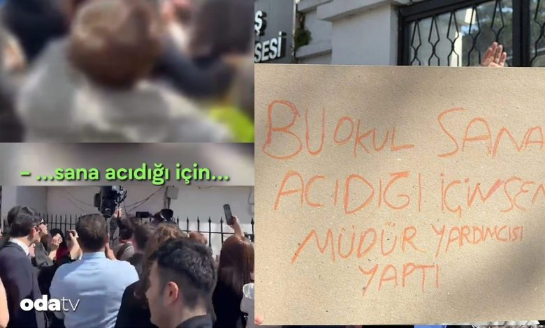Yaşananların akabinde öğrencilerden bu kelamlara “Bu okul sana acıdığı için seni müdür yardımcısı yaptı” pankartıyla cevap verdi.