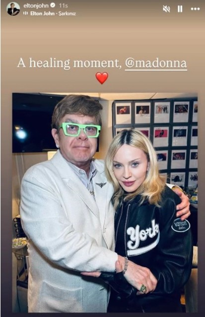 Madonna, Instagram’da paylaştığı gönderide, NBC’nin marka programı Saturday Night Live’ın sahne gerisinde Sir Elton’la çekildiği bir fotoğraf paylaştı ve ortalarındaki uyuşmazlığı çözmek için onu ziyaret ettiğini söyledi. Madonna yaptığı paylaşımda, “Sonunda baltayı gömdük! Bu hafta sonu Sir Elton’ın SNL’de performansını izlemeye gittim!” sözlerini kullandı.