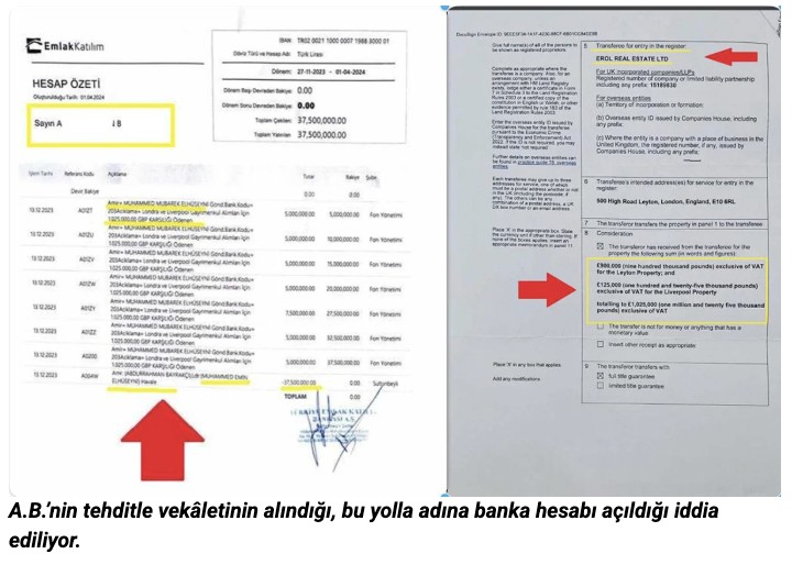 İddiaya nazaran; Londra ve Liverpool kentlerinde bulunan bu iki binanın tapusu, Erol’un talimatıyla müritlerden A.B ismine düzenlendi. Pirin vefatının akabinde Mübarek Erol’un avukatlarının A.B’yi tehdit ettiği ve bu yolla kapsamlı vekaleti aldıkları ileri sürüldü. A.B, iki hafta sonra vekaleti iptal etti lakin iş işten geçmişti. İngiltere’de yargıya intikal eden olayda Mübarek Erol’un avukatlarının, kelam konusu vekaletname sayesinde A.B. ismine banka hesabı açtığı ve bu hesap üzerinden uydurma bir satış gerçekleştirildiği sav edildi. Buna nazaran; A.B. ismine açılan hesaba Mübarek Erol tarafından bir gün içerisinde ve kesim modül biçimde 37 milyon 500 bin lira gönderildi; para tıpkı gün hesaptan çıkarıldı.