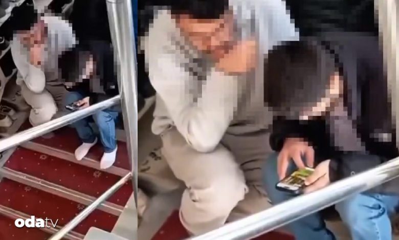 Cuma hutbesi sırasında cami merdivenlerine oturan iki gençten biri, cep telefonundan kumar oynarken görüntülendi. Öbür gencin ise arkadaşıyla birlikte oyunu izlediği anlar, etraftaki bir vatandaş tarafından kaydedildi.