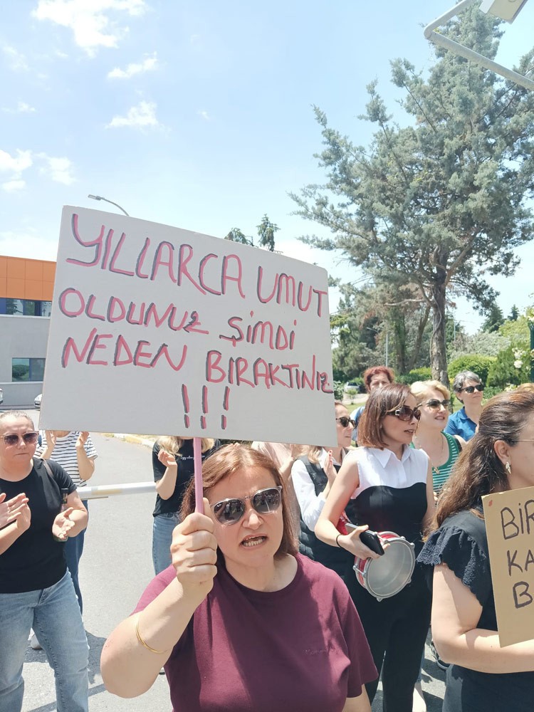 Ellerinde dövizlerle okul önünde bir ortaya gelen veliler, “Görmezden gelme, Metin Sabancı yaşasın”, “Sabancı sesimizi duy”, “Bir okul kapanırsa bin umut susar”, “Yıllarca umut oldunuz, artık neden bıraktınız?” yazılı pankartlar taşıyarak seslerini duyurmaya çalıştı.