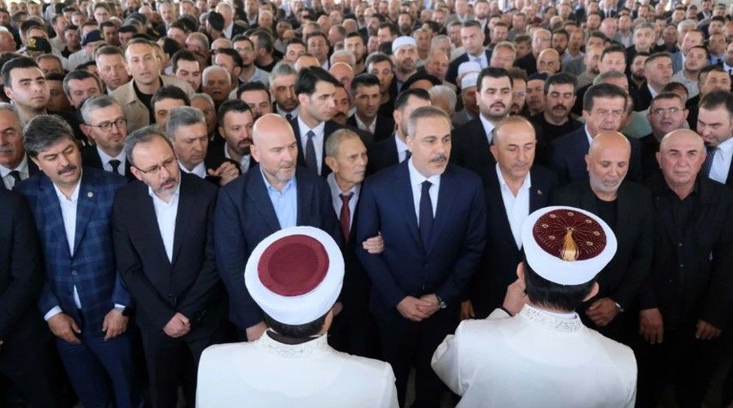 Törene katılan Dışişleri Bakanı Hakan Fidan, Mevlüt Çavuşoğlu ve Corendon Alanyaspor Kulübü Lideri Hasan Çavuşoğlu ile merhumun yakınlarına başsağlığı diledi.