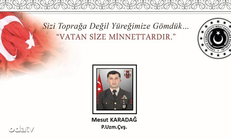 Milli Savunma Bakanlığı, Pençe-Kilit Harekatı bölgesinde misyon yapan Piyade Uzman Çavuş Mesut Karadağ’ın yıldırım düşmesi sonucu şehit olduğunu duyurdu.
