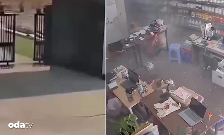 Bir işerinde bulunan çalışanların sarsıntıya yakalanma anları kameralara yansırken, yer kabuğunun zelzele sonucunda oluşturduğu yarık toplumsal medyada gündem oldu.