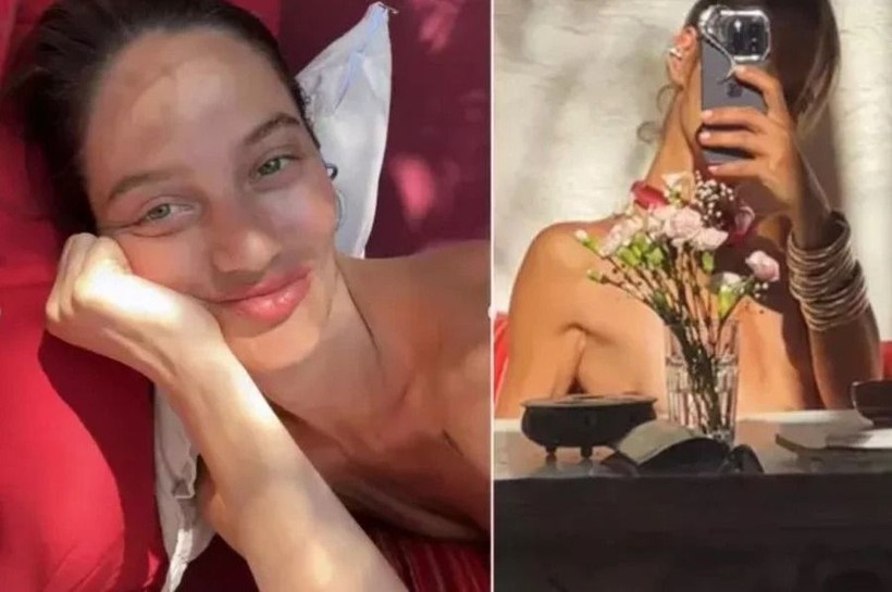 Farklı bir paylaşımında ise pembe bikini tercihiyle dikkat çeken oyuncu, sonrasında bikinisinin üstünü çıkartarak üstsüz poz verdi.