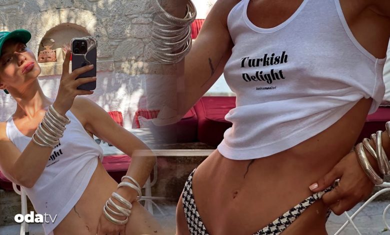 Oyuncu Gülcan Arslan’dan ‘Türk lokumu’ tişörtüyle savlı pozlar
