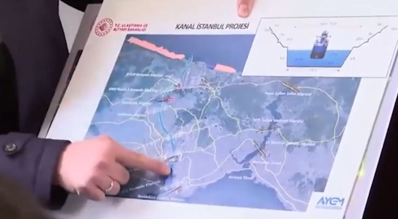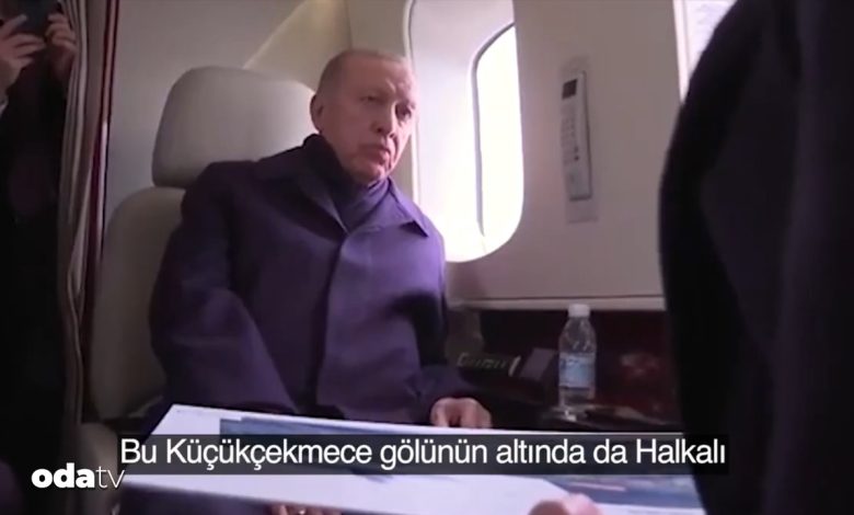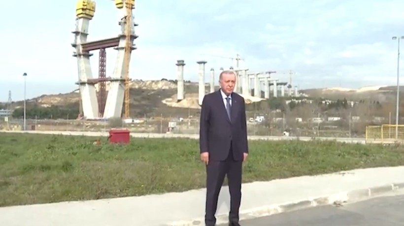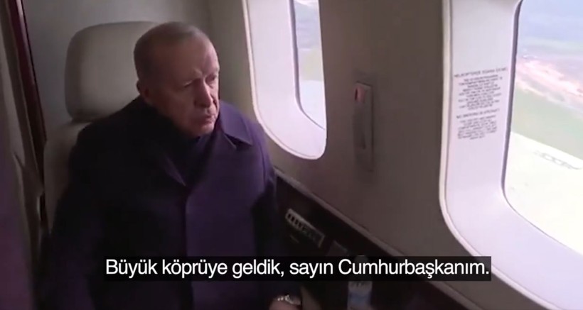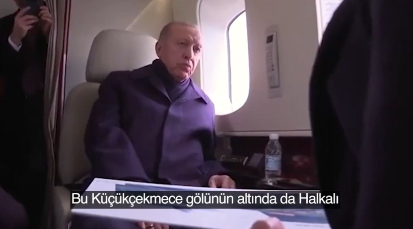 Videoda, helikopterden kanal güzergahını inceleyen Cumhurbaşkanı Erdoğan’a tıpkı sıralarda sunum yapıldığı da görülüyor.