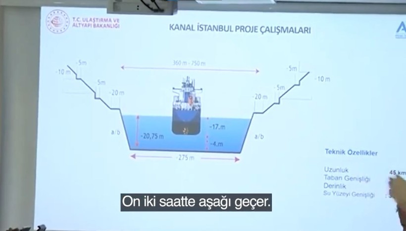 O bilgilerde kanalın derinliği, köprü viyadükleri ve büyüklükleri belirtildi.