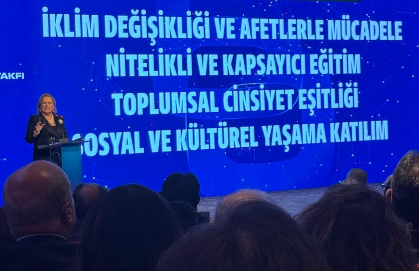 Güler Sabancı konuşmasında Sabancı Vakfını tanıtırken şunu dört mevzuyu üzerine basa basa vurguladı.
