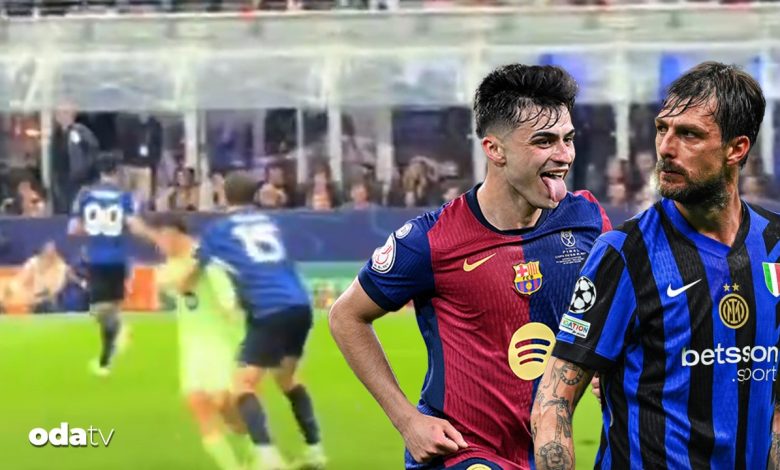 Inter oyuncusu Francesco Acerbi’nin Barcelonalı Pedri’yi ittiği imajlar toplumsal medyada reaksiyon çekti.