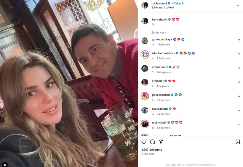 Sabancı ailesinin genç çifti Hacı ve Nazlı Sabancı, son periyotta toplumsal medyada dolaşan boşanma tezlerine İskoçya’nın Edinburgh kentinden bir fotoğrafla karşılık verdi.