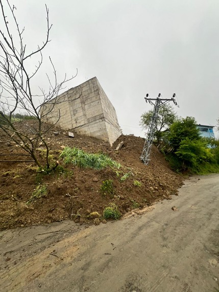Toprak kayması sonucu konutun istinat duvarı çöktü.