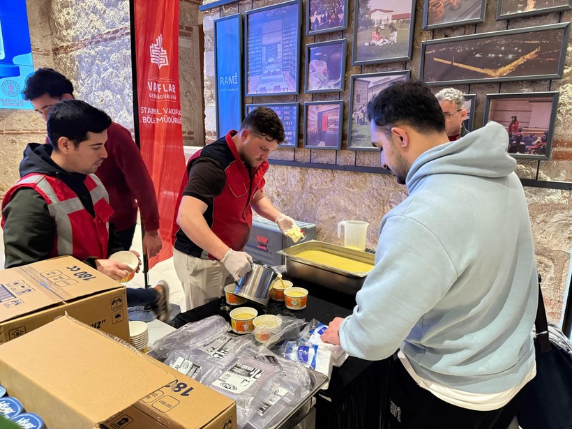 Depremden etkilenen vatandaşlar için kapılarını açan Eyüpsultan’daki Rami Kütüphanesi’nde de Vakıf vazifelileri tarafından sıcak çorba dağıtımı yapıldı.