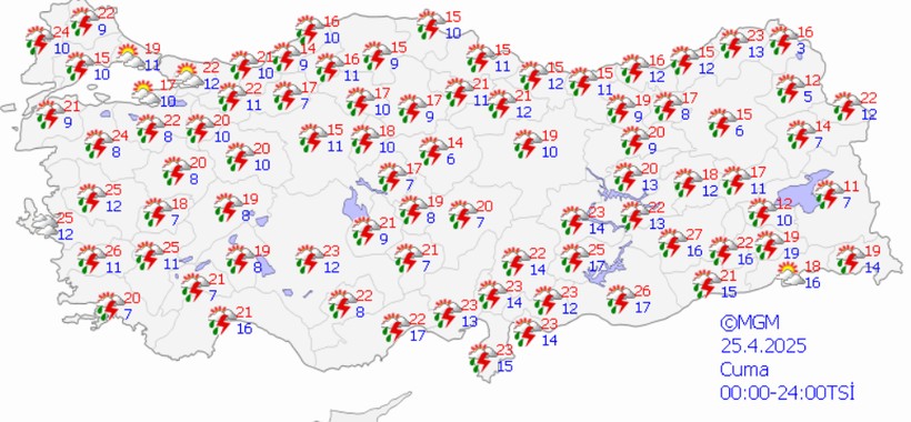 Öte yandan Meteoroloji Genel Müdürlüğü İstanbul’da da beklenen sağanak için tarih verdi. 21 Nisan saat 12.42’de yayınlanan son rapora nazaran Cumartesi günü İstanbul’da kuvvetli yağış bekleniyor.