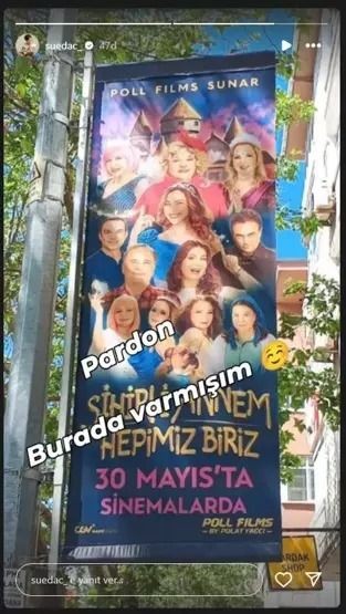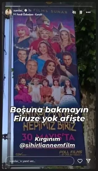 Hem dizide hem de sinemada Firuze karakterini oynayan Süeda Çil, afişte kendini göremeyince Instagram hesabından yaptığı paylaşımla yansısını gösterdi.