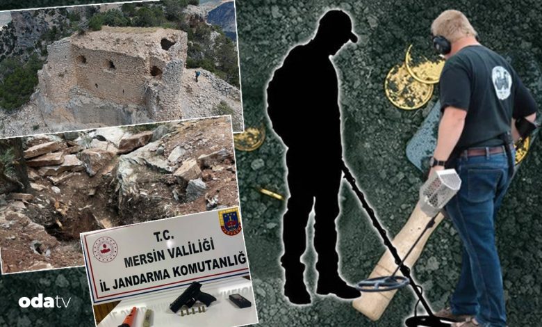 Mersin’de tarihi Mennan Kalesi’nde kaçak hafriyat yapıldığına dair ihbar alan Jandarma Kabahat Araştırma Timi olay yerine intikal etti. Buraya gelen jandarma grupları, altı kişilik takımın hafriyat yaptığını gördü.