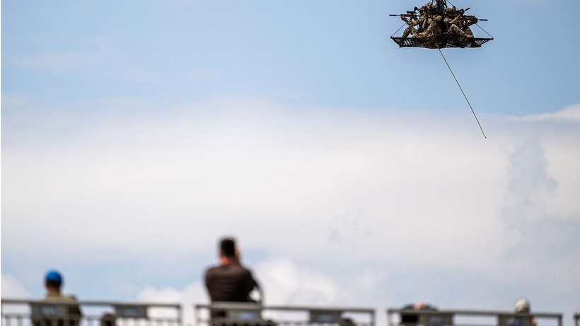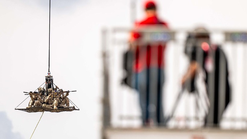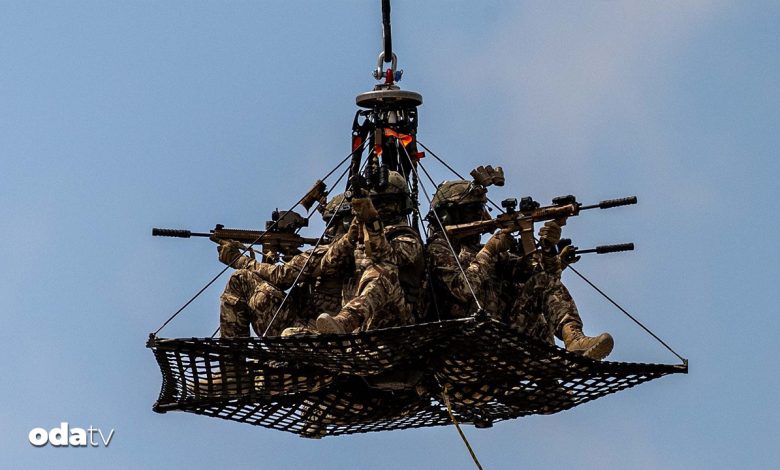 Bir küme askerin havadaki imajları kameralara yansıdı. O anlar nefes kesti.