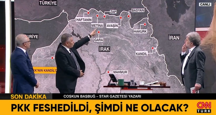 Star Gazetesi Müellifi Coşkun Başbuğ: Erbil, Duhok ve Süleymaniye’de silahların teslim edilmesi için üç tane merkez oluşturulacağı konuşuldu. Bu muhakkak Irak devletinin nezaretinde olacak biz nezaret edeceğiz. MİT’in müşahedesi altında olacak.