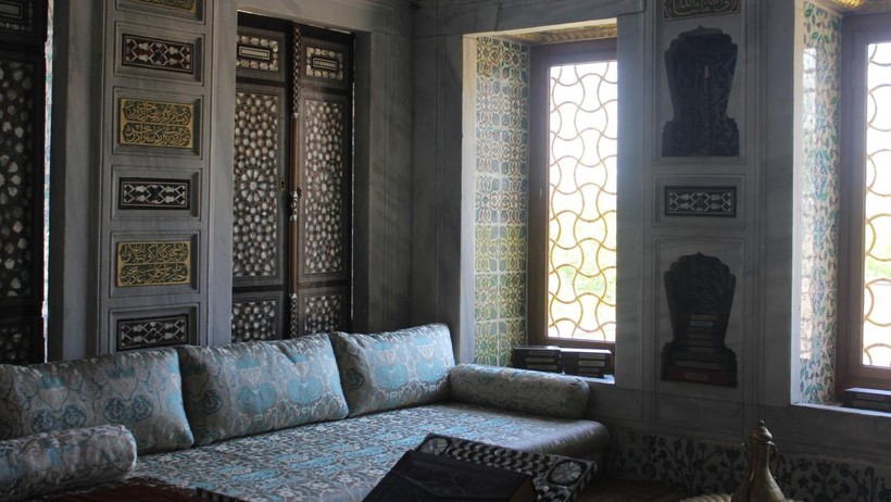 “Buradaki çiniler, Osmanlı çiniciliğinin son hoş örneklerinden. Özellikle burada kullanılmış olan Kur’an-ı Kerim’den ayetleri muhtevi olan çiniler. Bilhassa Fetih Suresi’nden başlayıp Kur’an-ı Kerim’in son cüzünde yer alan müddetlerin burada duvarlara nakşedildiğini görüyoruz. Tekrar Padişah’a methiyelerin yer aldığını görüyoruz. Bu odada kullanılan dolap kapaklarının Sultanahmet Mescidi’nin de mimarı olan periyodun ser mimarı Sedefkar Mehmed Ağa’nın elinden çıktığını biliyoruz.