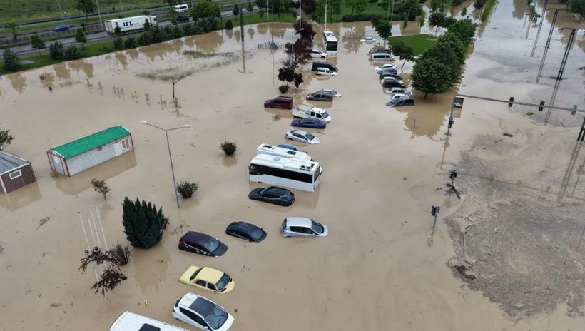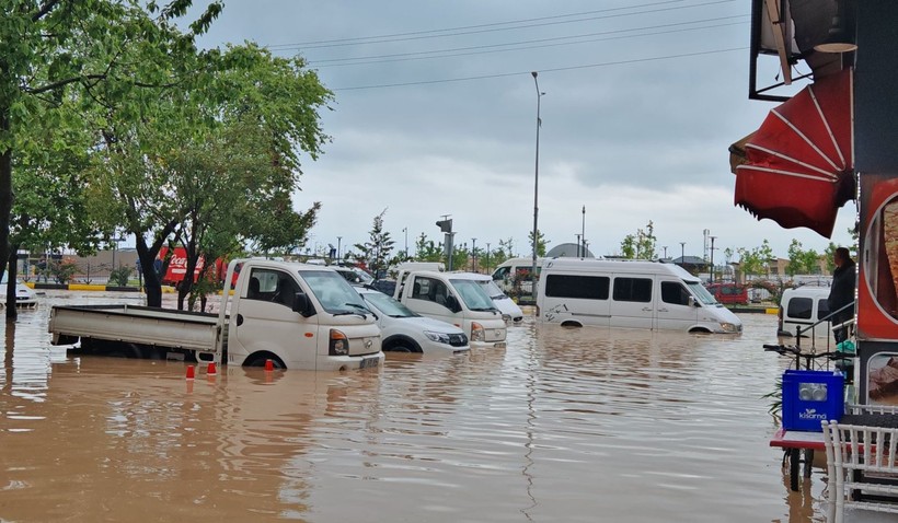 Düşük kotlardaki mesken ve iş yerleri ve park halindeki arabalar sular altında kaldı.