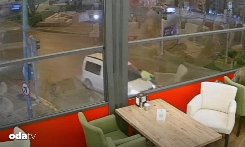 Öte yandan, olay anı etraftaki bir iş yerinin güvenlik kamerasınca kaydedildi.