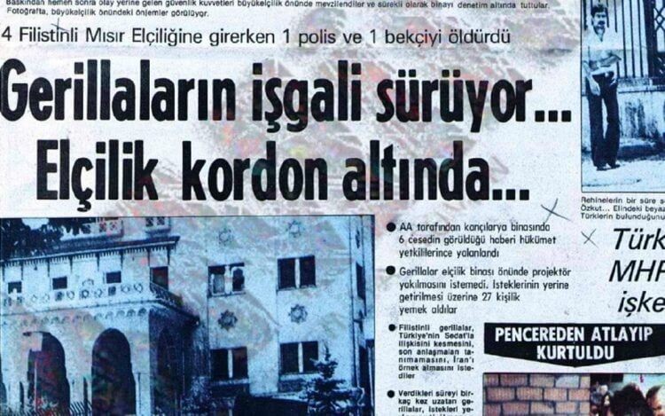 Tarih 13 Temmuz 1979’u gösterirken dört Filistinli Mervan Sebanu, Muhammed Taban Ebuzerat, Mustafa Beşeyşi ve Hüseyin Abdullah, Ankara’da Mısır Büyükelçiliğini bastılar. Mısır Büyükelçiliği baskını Filistin Kurtuluş Örgütü’nün Türkiye temsilciliğinin açılmasıyla sonuçlanmıştı. Gerillalar ise Filistin davasında o güne dek birlikte hareket eden Arap ülkeleri ortasında birinci büyük gediğin açıldığı Mısır Devlet Başkanı Enver Sedat’ın İsrail Başbakanı Menahem Begin ile ABD aracılığıyla imza altına aldığı Camp David Muahedesi’ni protesto ederek iptalini istiyorlardı.