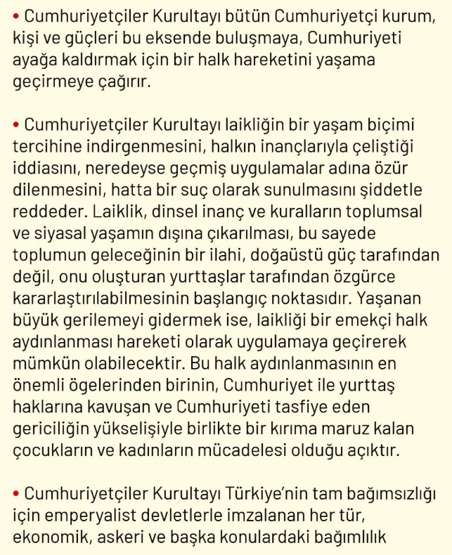 Tam bağımsızlık: NATO’dan çıkılması, yabancı askerî üslerin kapatılması ve Lozan Antlaşması’nın tartışılmazlığı öne çıkarıldı.