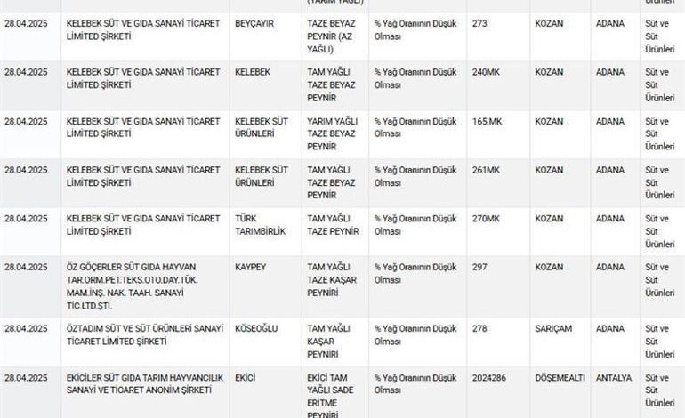 Bakanlığın listesinde 1 Ekim’den itibaren 138 tane yağ oranı düşük tespit edilen süt eseri var. Mesela yağ oranı azaltılmış tereyağı alanda yer alıyor. Mevzuat süt yağı belirli bir oranın altına düşmesin diyor. Buna uyulmayınca vatandaş aldatılıyor. Yayık tereyağı satılıyor. Bir bakıyorsunuz yasal hududun altında yağ oranı var. Mesela çörek otlu az yağlı beyaz peynir üretilmiş içerisinde bir çeşni var. O yağa güvenerek sütün yağını daha az koyuyorlar. Toplamda ortada bir yağ var lakin bir kısmı bitkisel bir kısmı süt yağı lakin süt yağı istenen ölçüde değil.  İzmir’de kaymağı satışa sunmuşlar. Kaymaktaki yağ oranı azaltılmış. Kaymakta da bir kalite oranı vardır. İçerisindeki kuru unsur ve su ölçüsü. İçerisine ek edilen bitkisel yağlarla maliyet düşürülebilir.