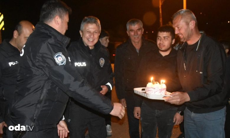 Olay yerine gelen polisler, gençlerin pasta sürpriziyle karşılaştı.