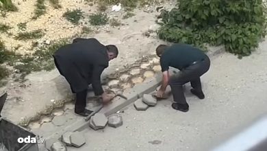 Akıl almaz hırsızlık: Güpegündüz kaldırım taşlarını söktü
