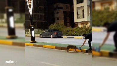 Karabük'te başına poşet takılan çakal, yoldan geçen üniversite öğretim görevlisinin müdahalesiyle kurtarıldı. O anlar cep telefonu kamerasıyla kaydedildi.