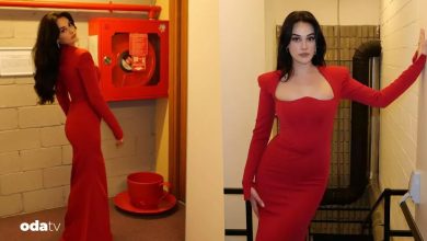 Esra Bilgiç kırmızı elbisesiyle mest etti