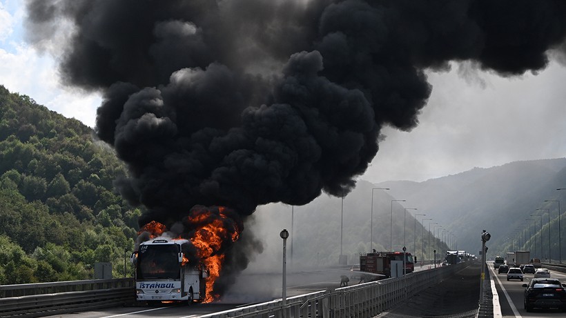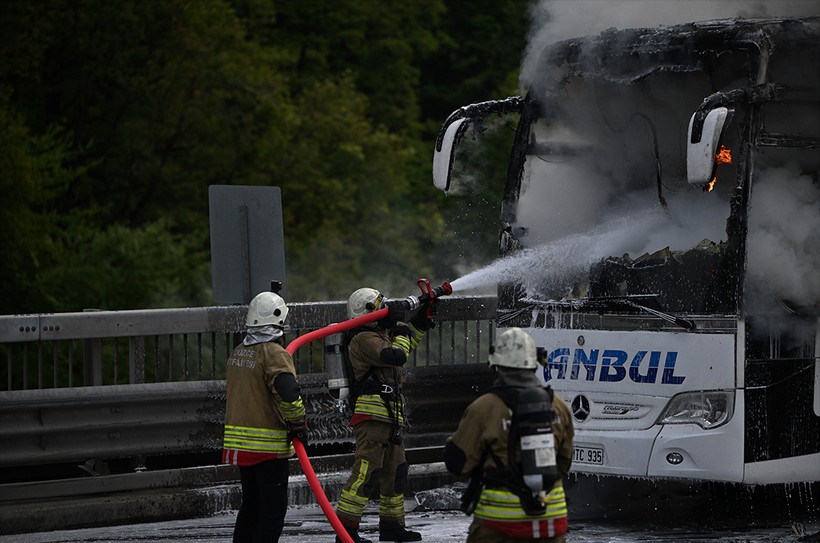 Durumu fark eden şoför, otobüsü sağ şeride çekerek yolcuları tahliye etti. Haber verilmesi üzerine bölgeye gelen itfaiye grupları, yangını söndürdü.