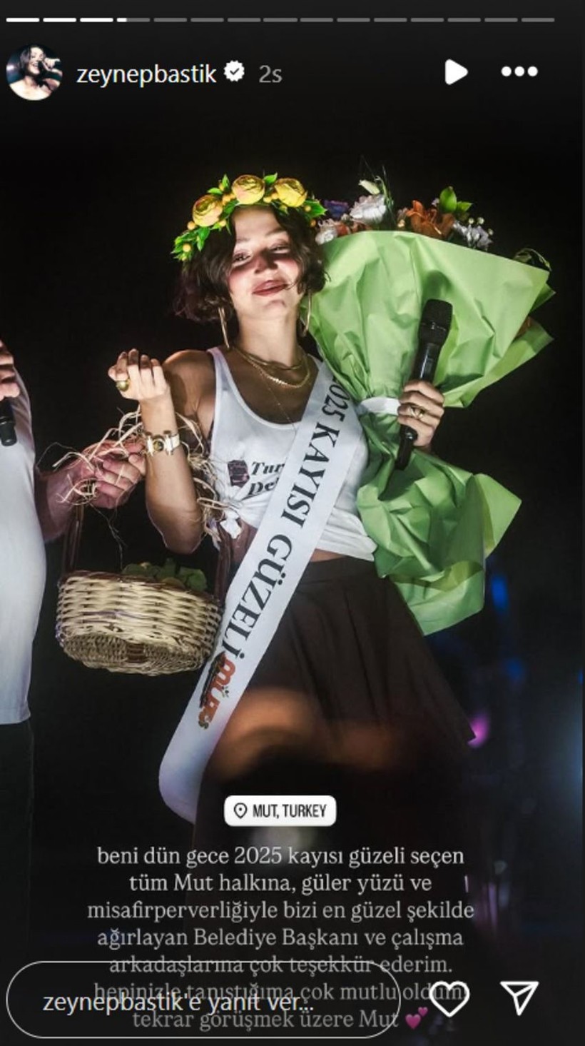 Mut’taki konser anlarını toplumsal medya hesabından da paylaşan oyuncu şu tabirlere yer verdi; “Beni dün gece 2025 kayısı hoşu seçen tüm Mut halkına, güler yüzü ve misafirperverliğiyle bizi en hoş biçimde ağırlayan Belediye Başkanı’na ve tüm emeği geçenlere çok teşekkür ederim. Hepinizle tanıştığıma çok keyifli oldum, tekrar görüşmek üzere Mut.”